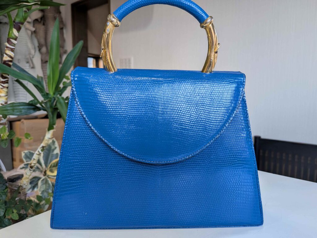 革が硬化・収縮してしまったリザードバッグの修復事例をご紹介します。